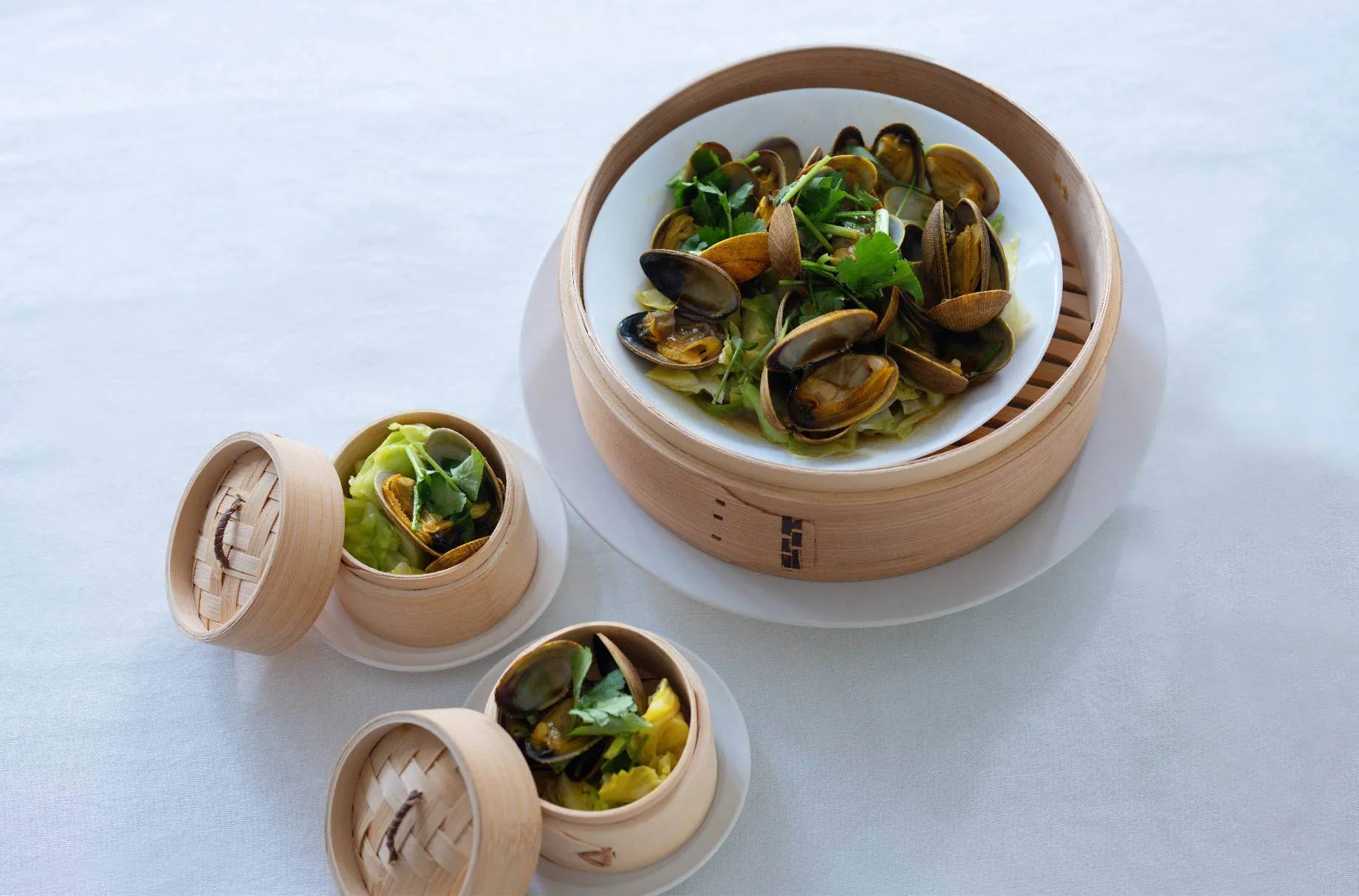 3. Return the clams to the cabbage, pour the broth over them, and top with coriander.