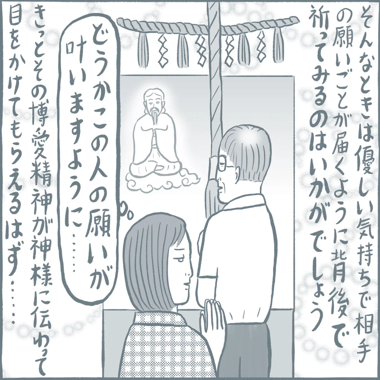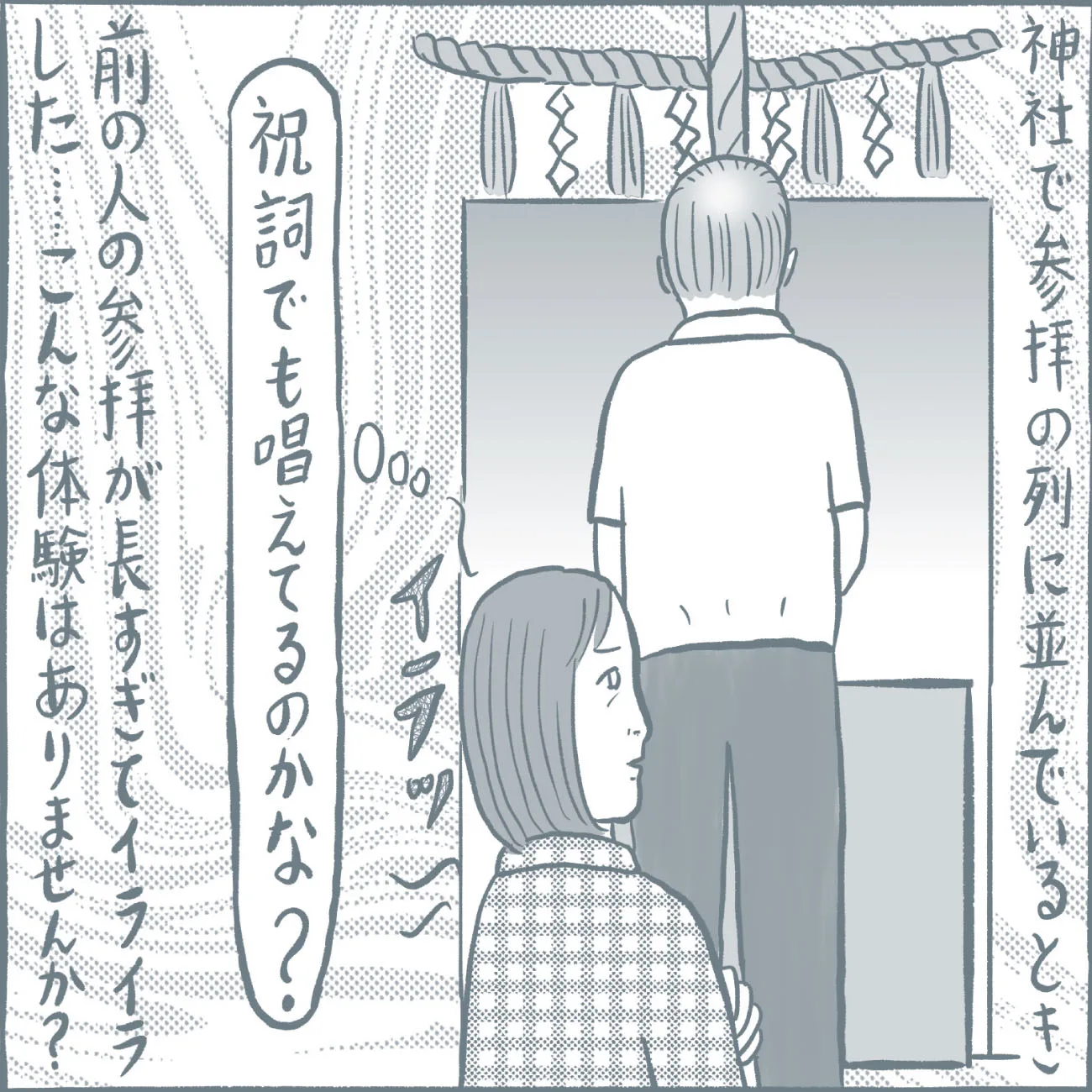神社にお参りする前後、境内では心の声は神様に聞かれている、と思ったほうが良さそうです。前の人が長々と参拝していて、思わずイラッとしてしまったり、神前で「トイレ行きたい…」とか関係ないことを考えていたりしたらもったいないです。自分の幸せだけでなく人の幸せも祈ることができたら、ポジティブなエネルギーが増幅し、いつか自分に返ってくることでしょう。神社内で心乱されることがあったら、神様に試されているのかもしれません。