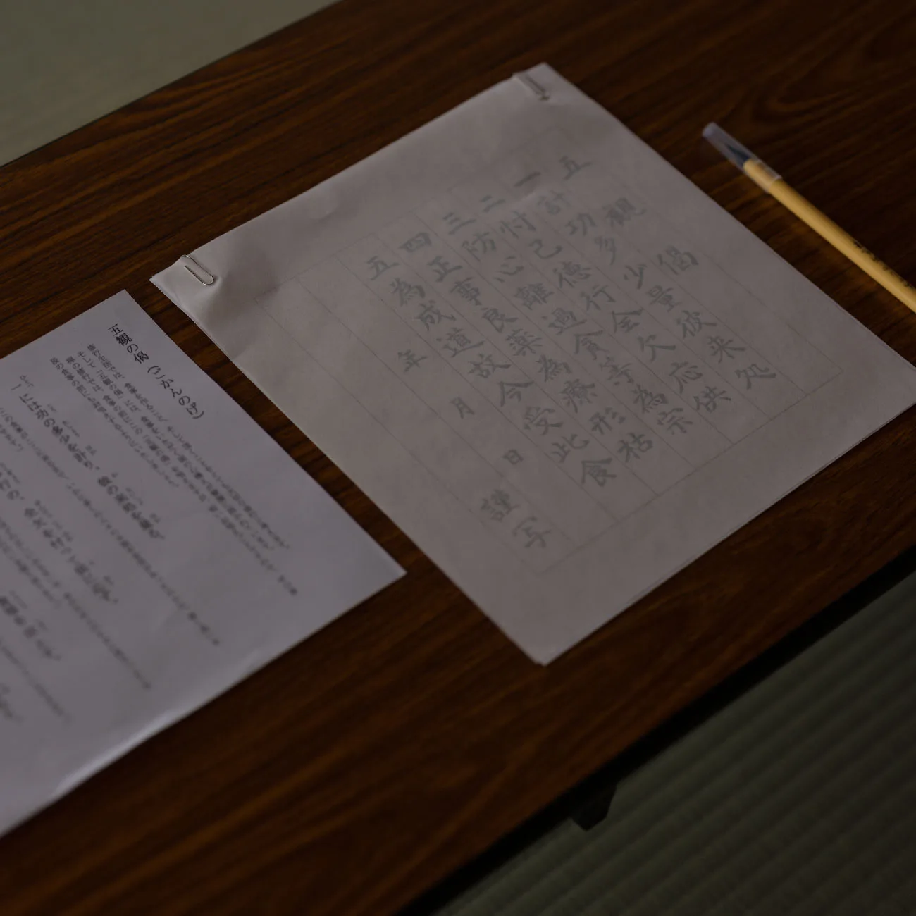 禅は生活すべてを丁寧に行うことが修行であると考えますから、食事の時間もまた、大切な修行の時間です。「五観の偈(ごかんのげ)」と呼ばれる短いお経を食前に唱え、坐禅をしながら黙々と食べるのが決まりです。この「五観の偈」には、「食材にかけられた多くの手間と苦労に思いを巡らそう」「自分の行いがこの食事をいただくに値するかを反省しよう」「欲望を満たすためではなく、健康を保つための良き薬として受け止めよう」といった、禅の大切な教えが詰まっています。